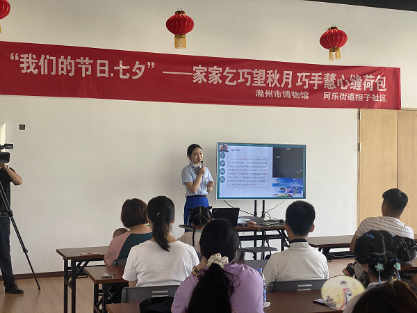 中国传统节日,凝结着中华民族的民族精神和民族情感,承载着中华民族的文化血脉和思想精华。在七夕节来临之际,8月23日上午,滁州市博物馆联合同乐街道担子社区开展了“家家乞巧望秋月,巧手慧心缝荷包”七夕主题活动。