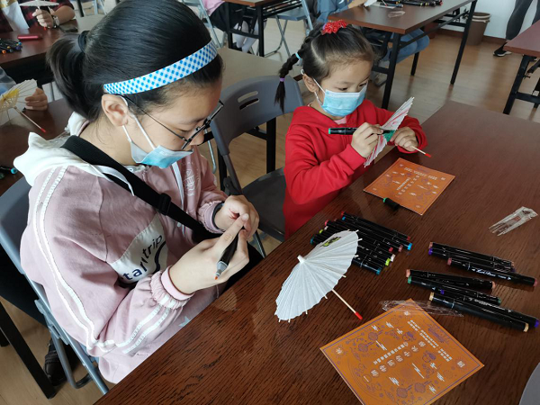 市博物馆联合艺旸美育举办“迎中秋·庆国庆”画纸伞活动