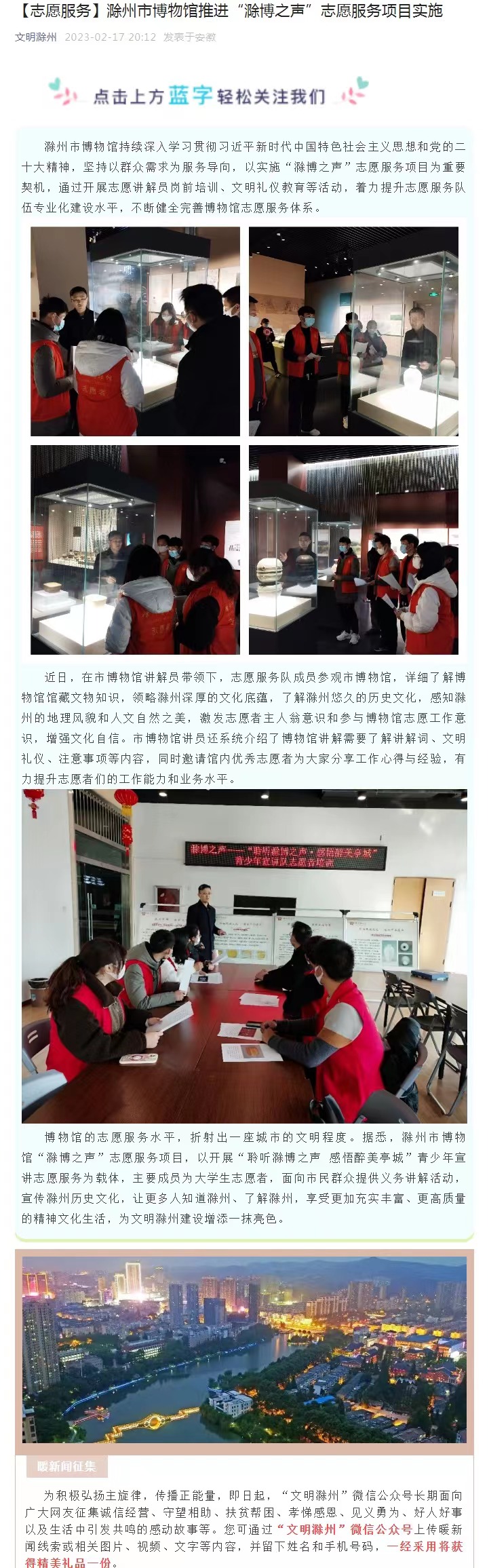 【文明滁州】滁州市博物馆推进“滁博之声”志愿服务项目实施