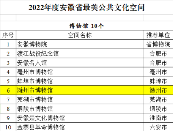 滁州市博物馆入选2022年度安徽省最美公共文化空间