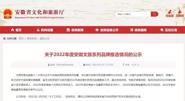 日前,安徽省文化和旅游厅公布了《关于2022年度安徽文旅系列品牌推选情况的公示》,滁州市博物馆在此次评选中喜获丰收,被评为2022年度安徽省最美公共文化空间。