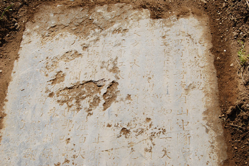 5月7日上午,市文物所、琅琊山管委会和e滁网发帖人驱车赶赴珠龙镇对网友(网名:天使之剑,帖名:重大发现----“新建清流关城阁铭”碑刻惊现珠龙)反映的碑刻及门槛石进行现场勘察。