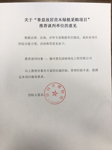 我单位对 章益故居苗木绿植采购项目 的竞争性谈判文件进行确认。 招标单位:滁州市博物馆 委托代理人:王静 联系电话: 0550-3038962 (单位盖章) 2020年4月 |