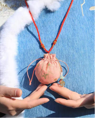 3.了解中草药的功效,选择中草药,动手研磨,装进香囊中进行缝合;