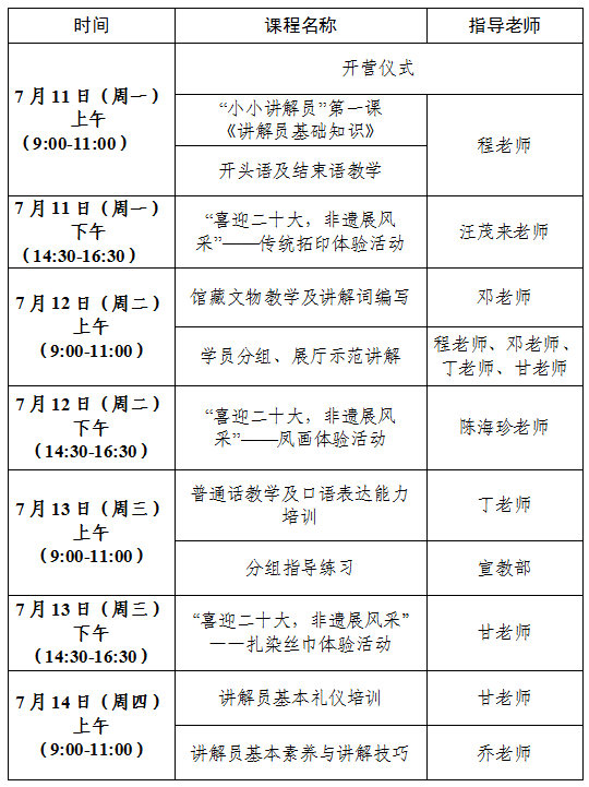“喜迎二十大,非遗展风采”第五届“小小讲解员”夏令营活动入选名单公布