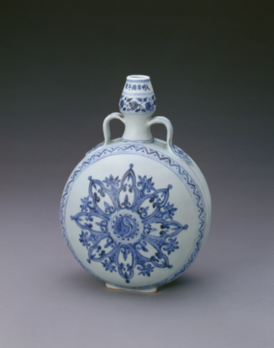 宣德款青花宝相花纹双耳扁瓶(明)(故宫博物院馆藏)